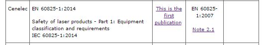 低壓指令2014/35 / EU(又稱LVD)與一些與激光器相關(guān)的協(xié)調(diào)EN標(biāo)準(zhǔn)相關(guān)聯(lián)。必須考慮的第一個LVD激光標(biāo)準(zhǔn)是EN 60825-1:2014。請參閱歐盟委員會關(guān)于LVD的頁面: